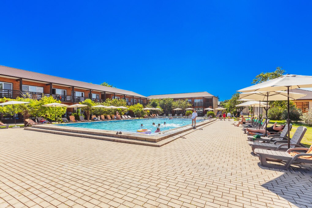 Жемчужина отеля - один из самых больших бассейнов в Абхазии с детским отсеком. Открытый подогреваемый бассейн (10/20) в отеле работает в период с мая по начало октября. Рядом располагается зона отдыха, шезлонги предоставляются Гостям бесплатно. Семьи с маленькими детьми оценят детский отсек бассейна с безопасной глубиной. Рядом с бассейном находится бар, где можно заказать прохладительные напитки и перекусить по приятным ценам.