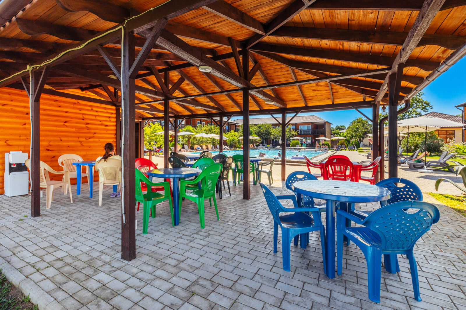 У бассейна расположен прекрасный бар, предлагающий прохладительные напитки и закуски по доступным ценам. Вы сможете насладиться этой услугой, делая ваш отдых еще более приятным и расслабляющим.